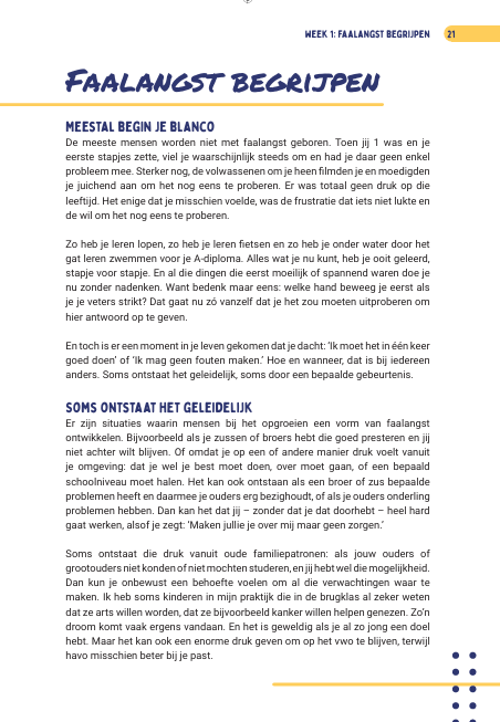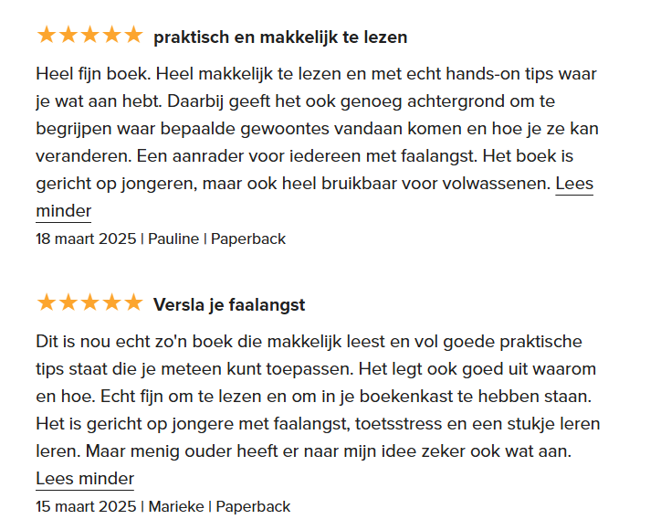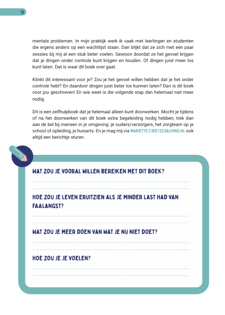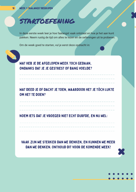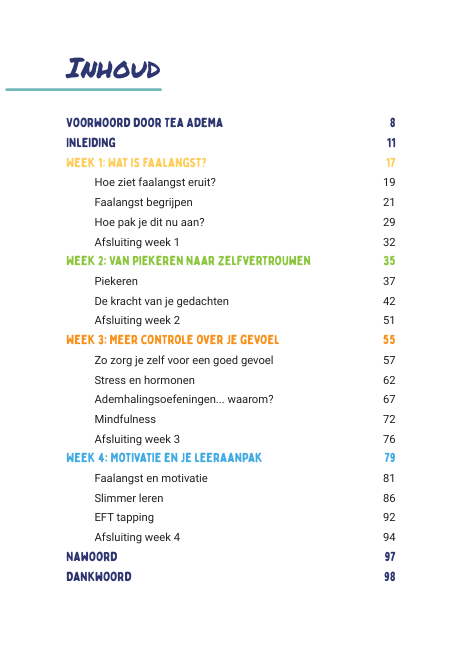 In dit boek ga je actief aan de slag met je faalangst en krijg je meer zelfvertrouwen. Voor dit alles betaal je slechts 24,95 inclusief verzendkosten (binnen NL)