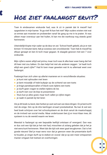 Naast het boek krijg je als lezer toegang tot de online Lezershoek met uitlegvideo’s van alle oefeningen plus 4 fijne ontspanningsoefeningen om te luisteren. Deze kunnen jongeren gewoon in hun eigen tempo oefenen en meedoen.
